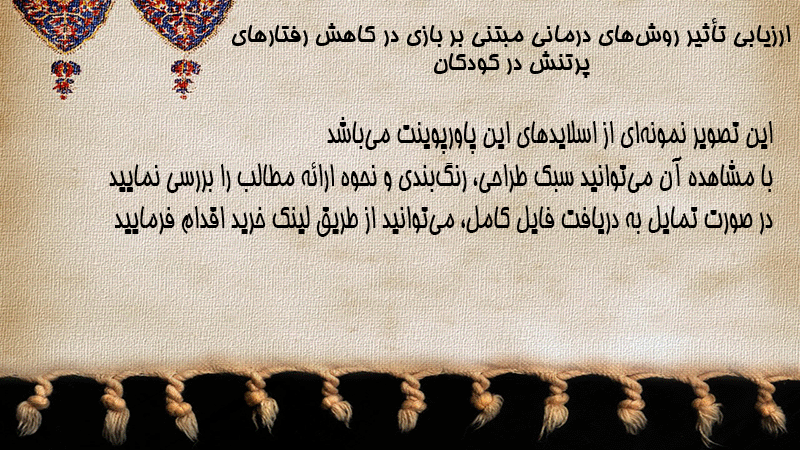 پاورپوینت ارزیابی تأثیر روشهای درمانی مبتنی بر بازی در کاهش رفتارهای پرتنش در کودکان