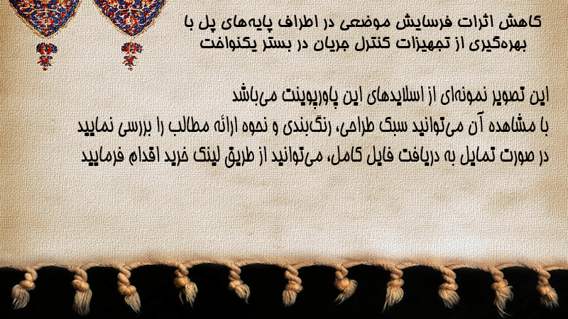 پاورپوینت کاهش اثرات فرسایش موضعی در اطراف پایههای پل با بهرهگیری از تجهیزات کنترل جریان در بستر یکنواخت