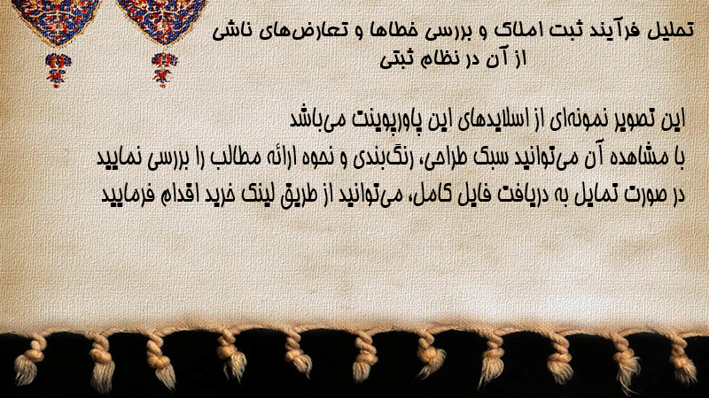پاورپوینت تحلیل فرآیند ثبت املاک و بررسی خطاها و تعارضهای ناشی از آن در نظام ثبتی