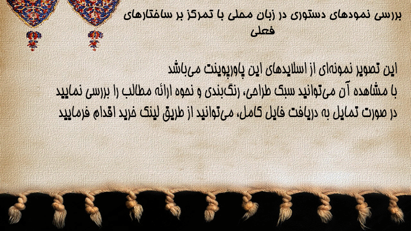 پاورپوینت بررسی نمودهای دستوری در زبان محلی با تمرکز بر ساختارهای فعلی