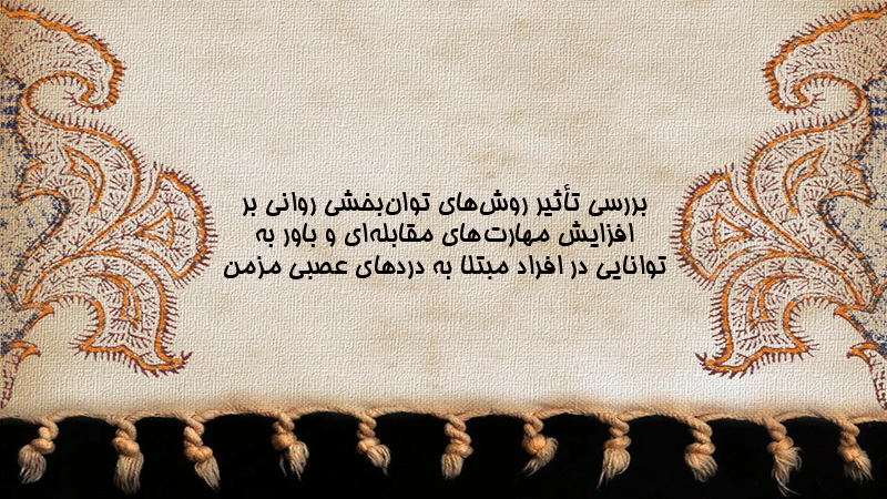 پاورپوینت بررسی تأثیر روشهای توانبخشی روانی بر افزایش مهارتهای مقابلهای و باور به توانایی در افراد مبتلا به دردهای عصبی مزمن