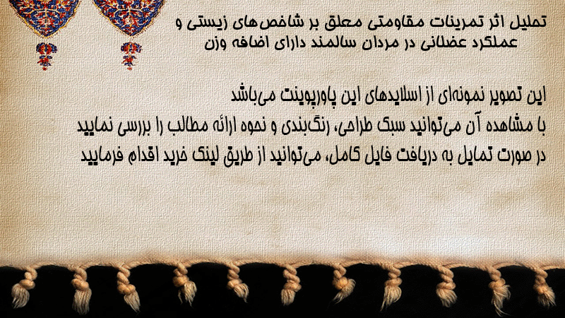 پاورپوینت تحلیل اثر تمرینات مقاومتی معلق بر شاخصهای زیستی و عملکرد عضلانی در مردان سالمند دارای اضافه وزن