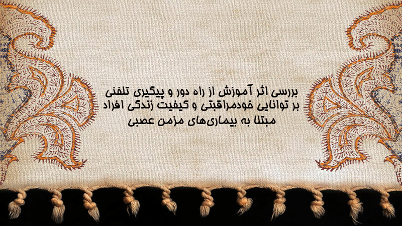 پاورپوینت بررسی اثر آموزش از راه دور و پیگیری تلفنی بر توانایی خودمراقبتی و کیفیت زندگی افراد مبتلا به بیماریهای مزمن عصبی