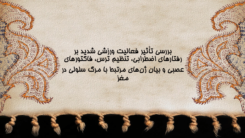 پاورپوینت بررسی تأثیر فعالیت ورزشی شدید بر رفتارهای اضطرابی، تنظیم ترس، فاکتورهای عصبی و بیان ژنهای مرتبط با مرگ سلولی در مغز