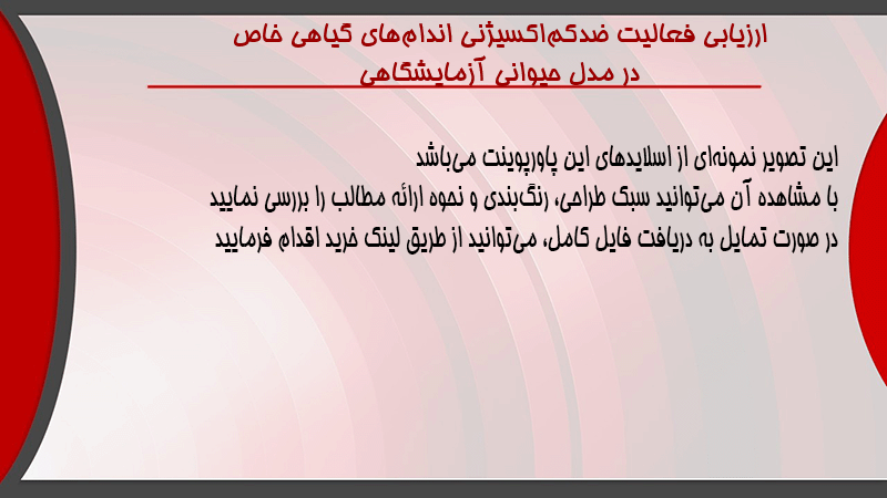 پاورپوینت ارزیابی فعالیت ضدکماکسیژنی اندامهای گیاهی خاص در مدل حیوانی آزمایشگاهی