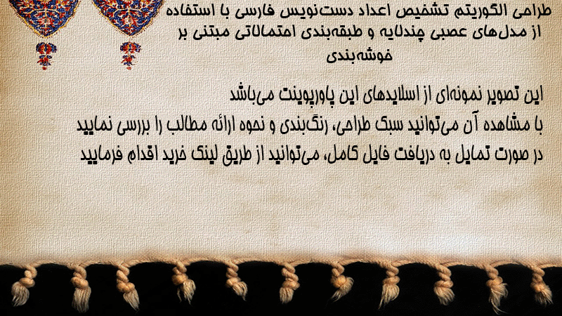 پاورپوینت طراحی الگوریتم تشخیص اعداد دستنویس فارسی با استفاده از مدلهای عصبی چندلایه و طبقهبندی احتمالاتی مبتنی بر خوشهبندی