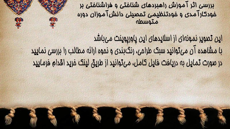 پاورپوینت بررسی اثر آموزش راهبردهای شناختی و فراشناختی بر خودکارآمدی و خودتنظیمی تحصیلی دانشآموزان دوره متوسطه