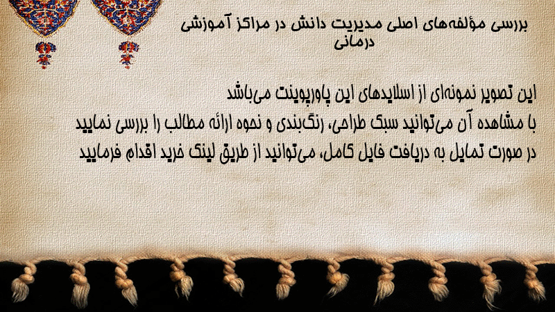 پاورپوینت بررسی مؤلفههای اصلی مدیریت دانش در مراکز آموزشی درمانی