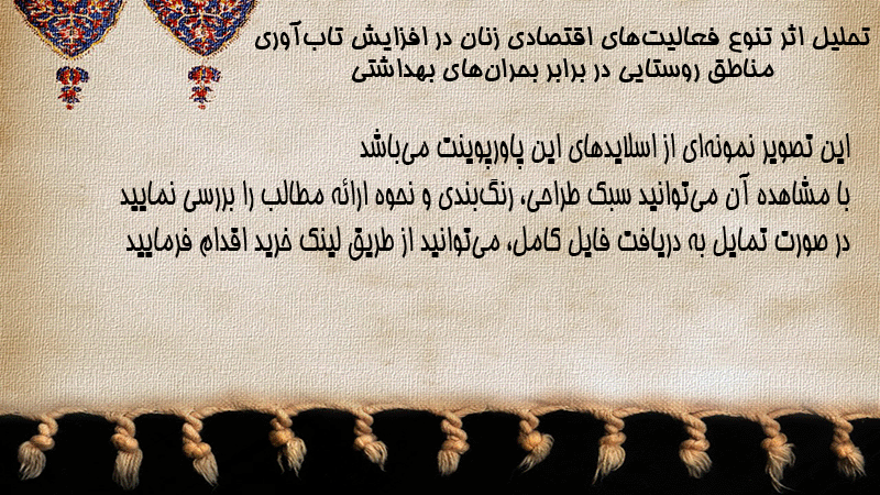 پاورپوینت تحلیل اثر تنوع فعالیتهای اقتصادی زنان در افزایش تابآوری مناطق روستایی در برابر بحرانهای بهداشتی