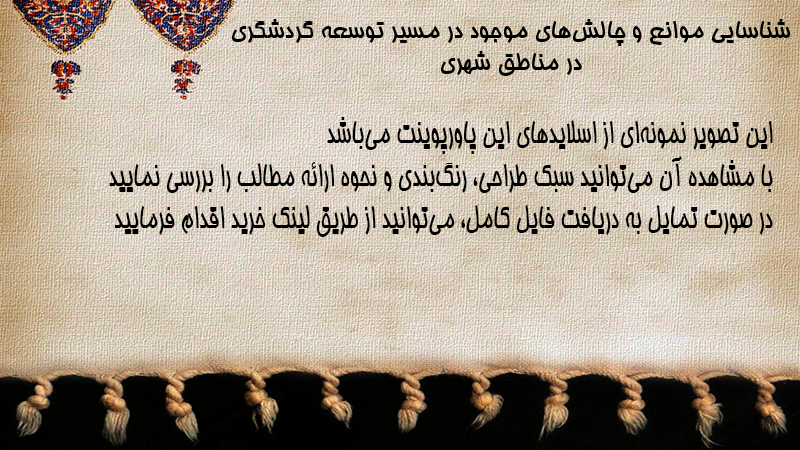 پاورپوینت شناسایی موانع و چالشهای موجود در مسیر توسعه گردشگری در مناطق شهری