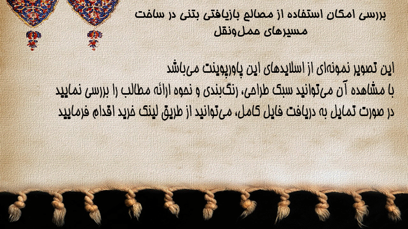 پاورپوینت بررسی امکان استفاده از مصالح بازیافتی بتنی در ساخت مسیرهای حملونقل