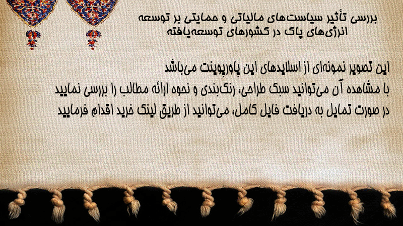 پاورپوینت بررسی تأثیر سیاستهای مالیاتی و حمایتی بر توسعه انرژیهای پاک در کشورهای توسعهیافته