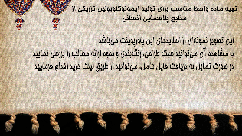 پاورپوینت تهیه ماده واسط مناسب برای تولید ایمونوگلوبولین تزریقی از منابع پلاسمایی انسانی