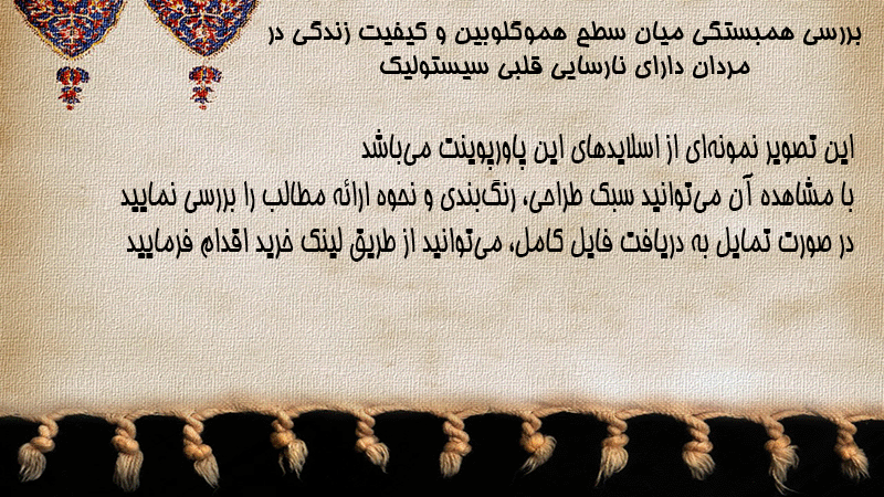 پاورپوینت بررسی همبستگی میان سطح هموگلوبین و کیفیت زندگی در مردان دارای نارسایی قلبی سیستولیک