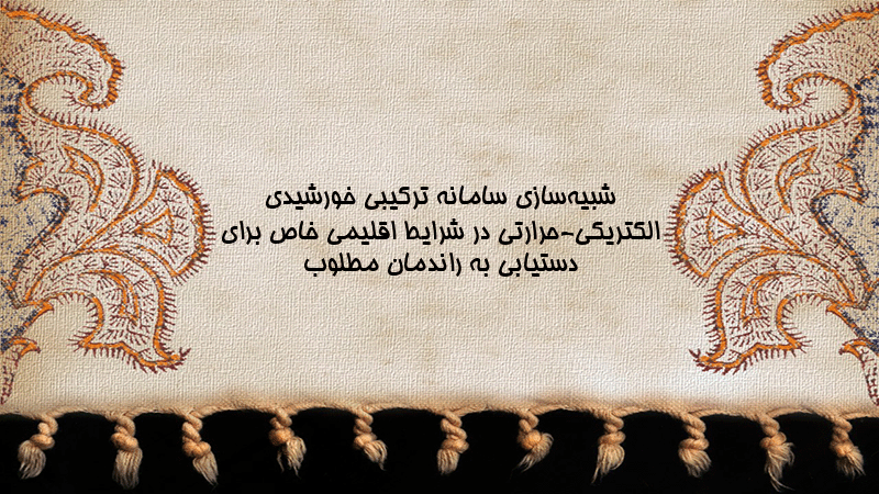 پاورپوینت شبیهسازی سامانه ترکیبی خورشیدی الکتریکی-حرارتی در شرایط اقلیمی خاص برای دستیابی به راندمان مطلوب