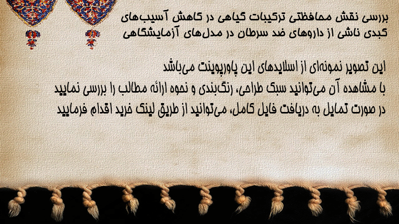 پاورپوینت بررسی نقش محافظتی ترکیبات گیاهی در کاهش آسیبهای کبدی ناشی از داروهای ضد سرطان در مدلهای آزمایشگاهی
