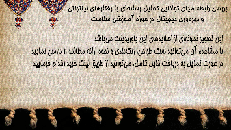 پاورپوینت بررسی رابطه میان توانایی تحلیل رسانهای با رفتارهای اینترنتی و بهرهوری دیجیتال در حوزه آموزشی سلامت