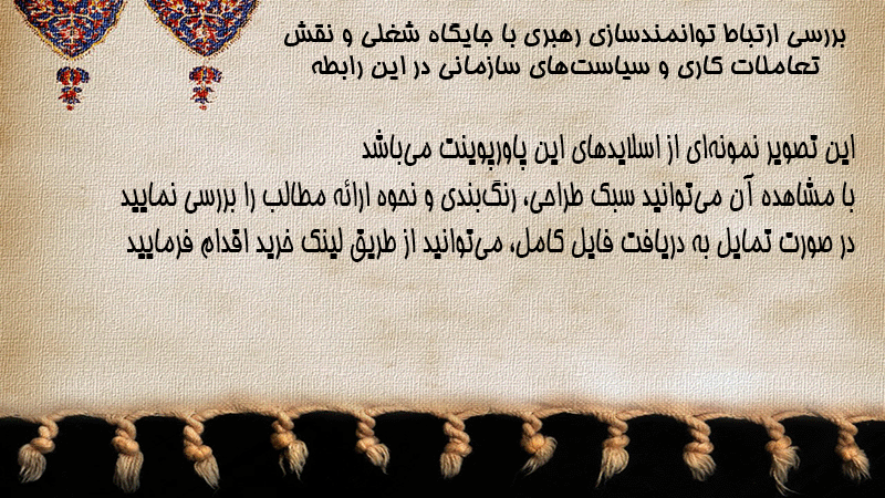 پاورپوینت بررسی ارتباط توانمندسازی رهبری با جایگاه شغلی و نقش تعاملات کاری و سیاستهای سازمانی در این رابطه