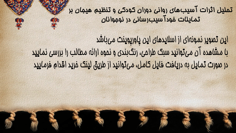 پاورپوینت تحلیل اثرات آسیبهای روانی دوران کودکی و تنظیم هیجان بر تمایلات خودآسیبرسانی در نوجوانان
