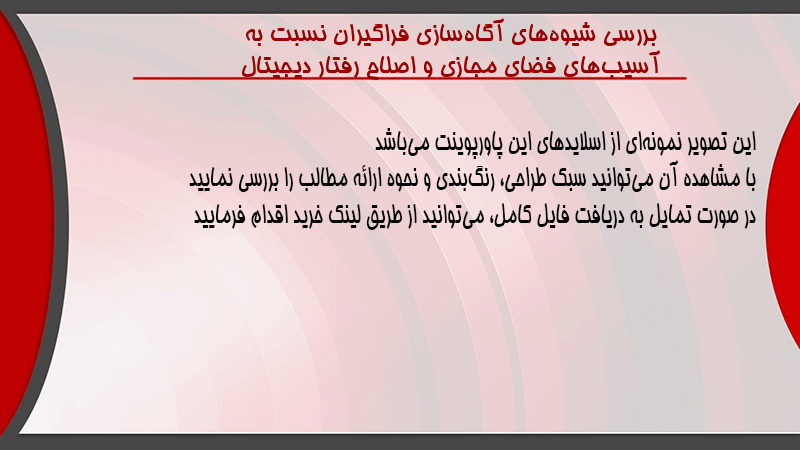 پاورپوینت بررسی شیوههای آگاهسازی فراگیران نسبت به آسیبهای فضای مجازی و اصلاح رفتار دیجیتال