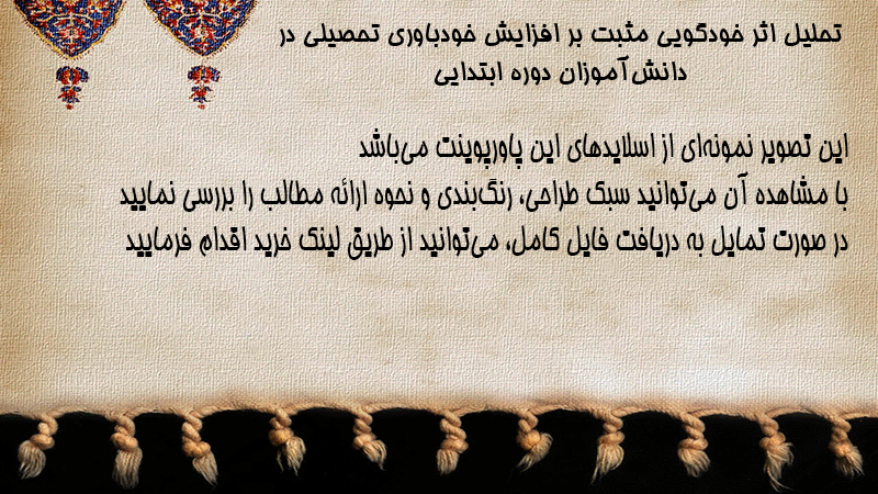 پاورپوینت تحلیل اثر خودگویی مثبت بر افزایش خودباوری تحصیلی در دانشآموزان دوره ابتدایی