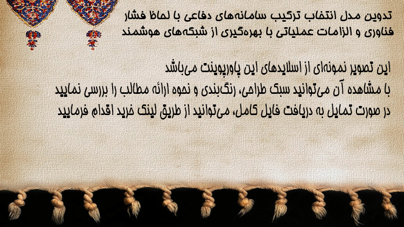 پاورپوینت تدوین مدل انتخاب ترکیب سامانههای دفاعی با لحاظ فشار فناوری و الزامات عملیاتی با بهرهگیری از شبکههای هوشمند