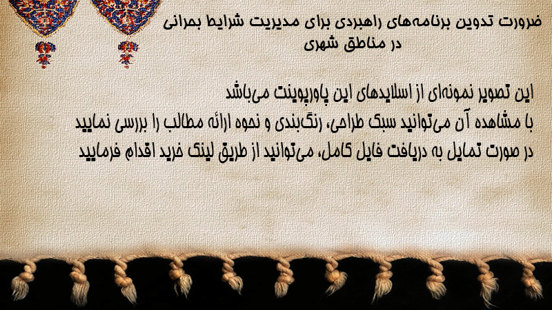 پاورپوینت ضرورت تدوین برنامههای راهبردی برای مدیریت شرایط بحرانی در مناطق شهری