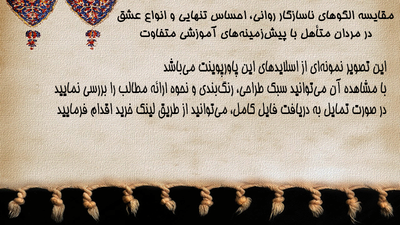 پاورپوینت مقایسه الگوهای ناسازگار روانی، احساس تنهایی و انواع عشق در مردان متأهل با پیشزمینههای آموزشی متفاوت