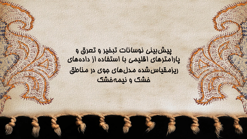 پاورپوینت پیشبینی نوسانات تبخیر و تعرق و پارامترهای اقلیمی با استفاده از دادههای ریزمقیاسشده مدلهای جوی در مناطق خشک و نیمهخشک