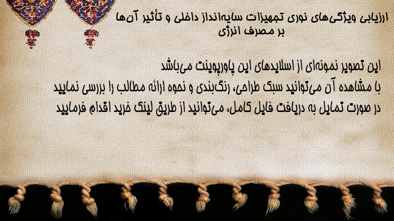 پاورپوینت ارزیابی ویژگیهای نوری تجهیزات سایهانداز داخلی و تأثیر آنها بر مصرف انرژی