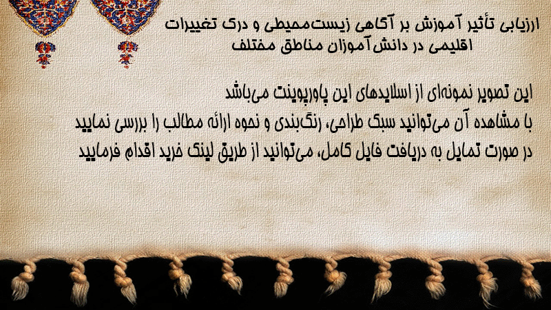 پاورپوینت ارزیابی تأثیر آموزش بر آگاهی زیستمحیطی و درک تغییرات اقلیمی در دانشآموزان مناطق مختلف