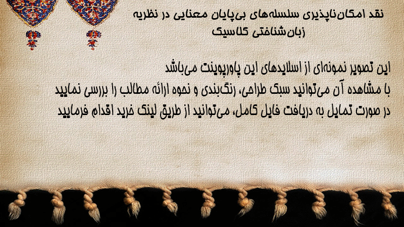 پاورپوینت نقد امکانناپذیری سلسلههای بیپایان معنایی در نظریه زبانشناختی کلاسیک