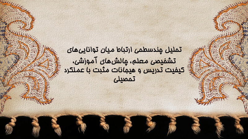 پاورپوینت تحلیل چندسطحی ارتباط میان تواناییهای تشخیصی معلم، چالشهای آموزشی، کیفیت تدریس و هیجانات مثبت با عملکرد تحصیلی