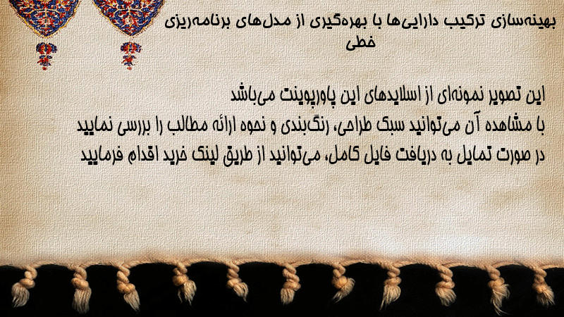 پاورپوینت بهینهسازی ترکیب داراییها با بهرهگیری از مدلهای برنامهریزی خطی