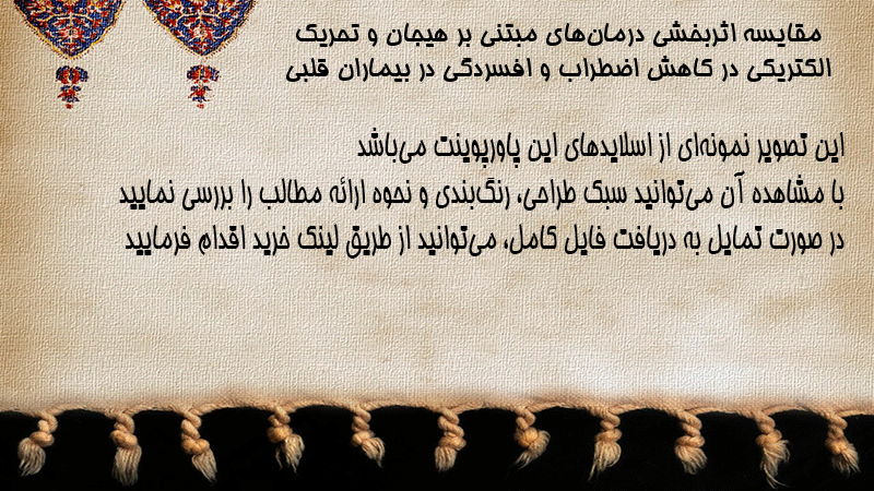 پاورپوینت مقایسه اثربخشی درمانهای مبتنی بر هیجان و تحریک الکتریکی در کاهش اضطراب و افسردگی در بیماران قلبی