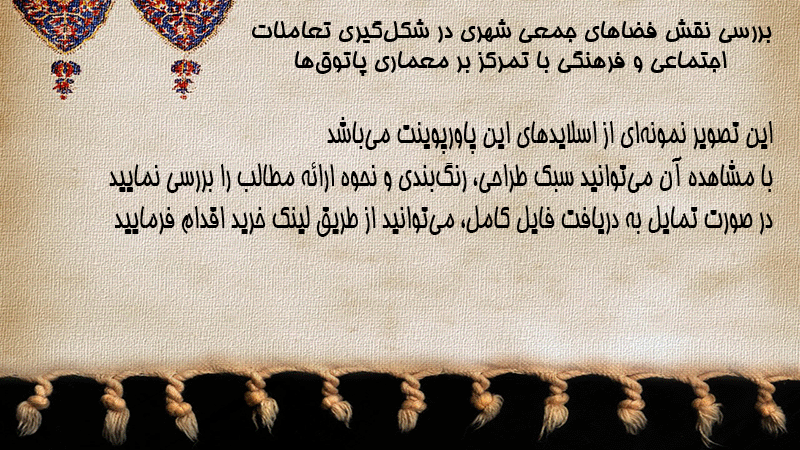 پاورپوینت بررسی نقش فضاهای جمعی شهری در شکلگیری تعاملات اجتماعی و فرهنگی با تمرکز بر معماری پاتوقها