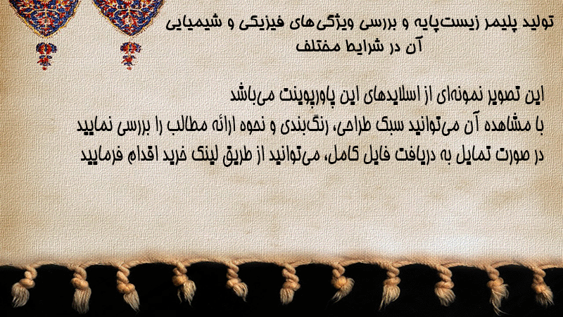پاورپوینت تولید پلیمر زیستپایه و بررسی ویژگیهای فیزیکی و شیمیایی آن در شرایط مختلف