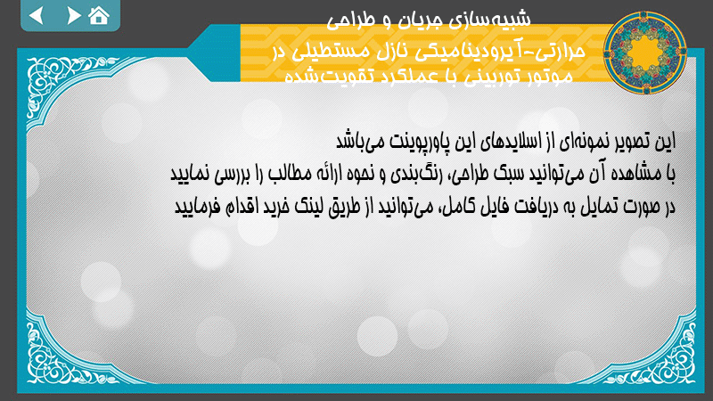 پاورپوینت شبیهسازی جریان و طراحی حرارتی-آیرودینامیکی نازل مستطیلی در موتور توربینی با عملکرد تقویتشده