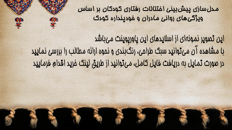 پاورپوینت مدلسازی پیشبینی اختلالات رفتاری کودکان بر اساس ویژگیهای روانی مادران و خودپنداره کودک