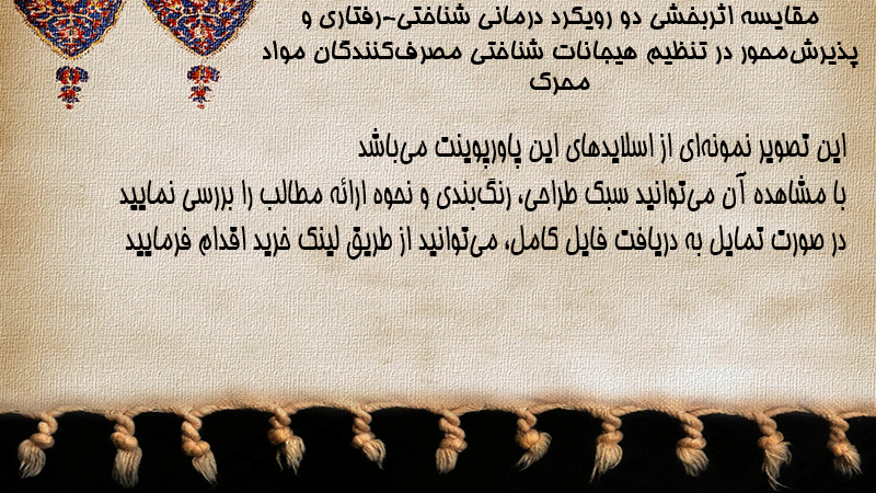 پاورپوینت مقایسه اثربخشی دو رویکرد درمانی شناختی-رفتاری و پذیرشمحور در تنظیم هیجانات شناختی مصرفکنندگان مواد محرک