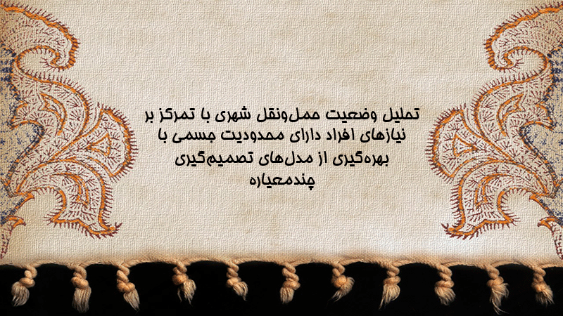 پاورپوینت تحلیل وضعیت حملونقل شهری با تمرکز بر نیازهای افراد دارای محدودیت جسمی با بهرهگیری از مدلهای تصمیمگیری چندمعیاره