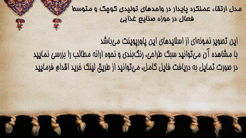 پاورپوینت مدل ارتقاء عملکرد پایدار در واحدهای تولیدی کوچک و متوسط فعال در حوزه صنایع غذایی