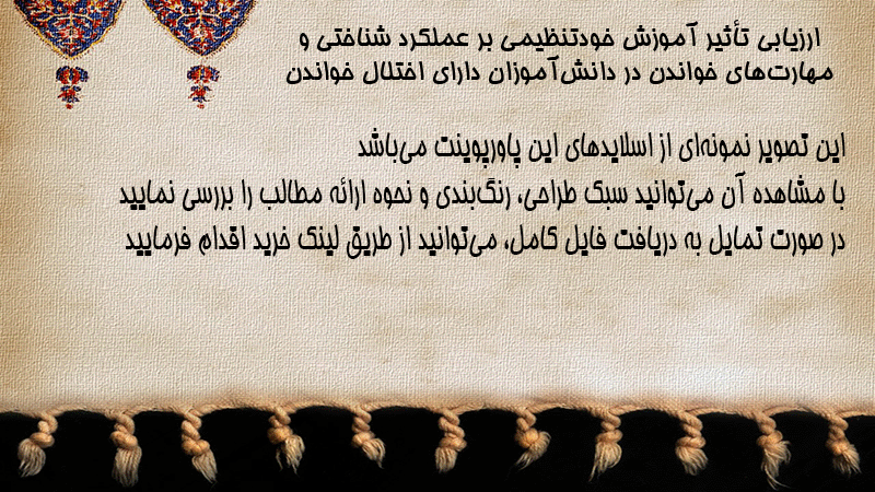 پاورپوینت ارزیابی تأثیر آموزش خودتنظیمی بر عملکرد شناختی و مهارتهای خواندن در دانشآموزان دارای اختلال خواندن