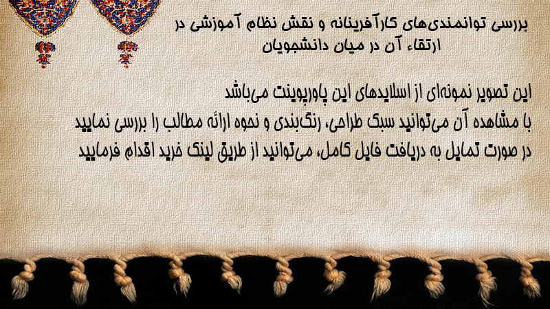 پاورپوینت بررسی توانمندیهای کارآفرینانه و نقش نظام آموزشی در ارتقاء آن در میان دانشجویان