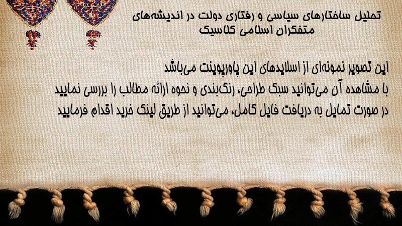 پاورپوینت تحلیل ساختارهای سیاسی و رفتاری دولت در اندیشههای متفکران اسلامی کلاسیک