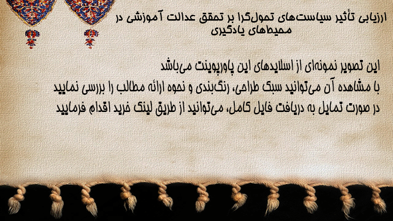 پاورپوینت ارزیابی تأثیر سیاستهای تحولگرا بر تحقق عدالت آموزشی در محیطهای یادگیری