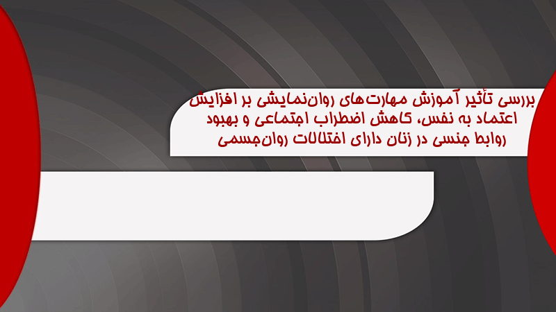 پاورپوینت بررسی تأثیر آموزش مهارتهای رواننمایشی بر افزایش اعتماد به نفس، کاهش اضطراب اجتماعی و بهبود روابط جنسی در زنان دارای اختلالات روانجسمی