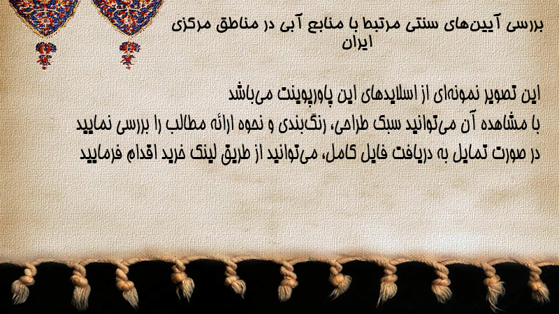 پاورپوینت بررسی آیینهای سنتی مرتبط با منابع آبی در مناطق مرکزی ایران