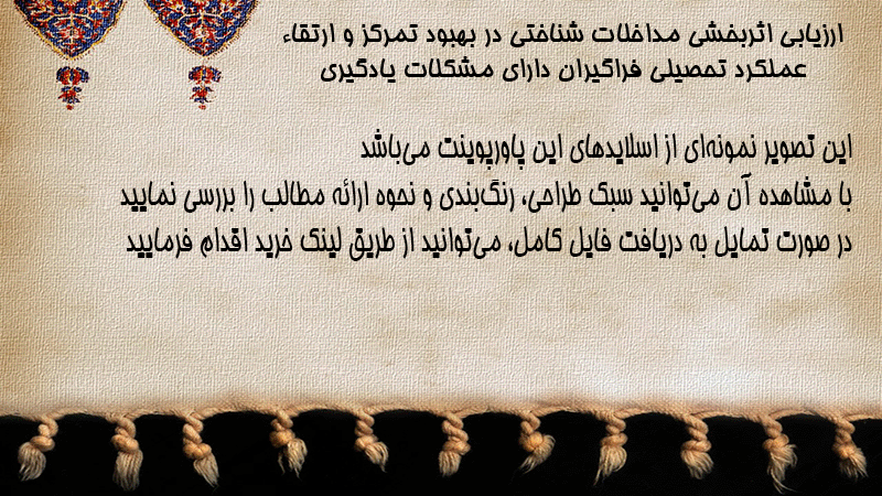 پاورپوینت ارزیابی اثربخشی مداخلات شناختی در بهبود تمرکز و ارتقاء عملکرد تحصیلی فراگیران دارای مشکلات یادگیری