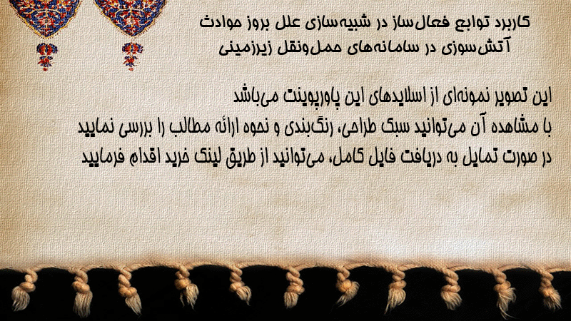 پاورپوینت کاربرد توابع فعالساز در شبیهسازی علل بروز حوادث آتشسوزی در سامانههای حملونقل زیرزمینی